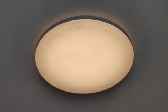 这款智能吸顶灯的造型十分简约,圆形的中间部分稍微有些凸起,边缘部分有一枚“Aqara|OPPLE”的Logo,也代表着这款产品来自于Aqara与欧普两个品牌的大胆尝试。它的灯罩为白色的亚克力材质,防护等级为IP40,能够有效地防止蚊虫进入。因此使用寿命应该会相当长。