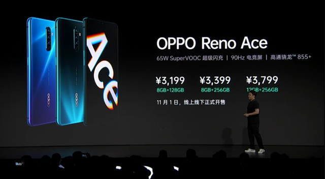 而在价格方面,OPPO Reno Ace根据内存组合有三个版本:8GB+128GB售3199元,8GB+256GB售3399元,12GB+256GB售3799元。10月17日参与抢购还可以享受200元的优惠(限8GB+128/256GB版本),也就是2999元起售。另外还有一款OPPO Reno Ace高达40周年定制版售价3599元,限量3万台。