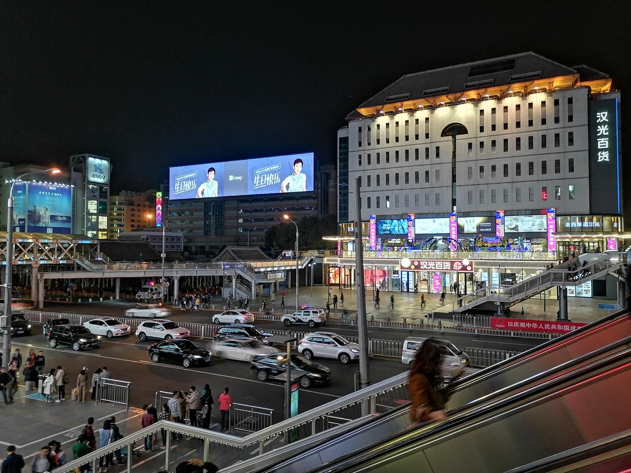 从样张中可以看到,华为畅享10在开启超级夜景模式后拍摄的夜景画面有了出色的亮度,图片中右处路灯部分和左侧的灯箱部分的高光得到了很好的控制,左侧暗部的细节也十分清晰锐利,画面更具有层次感。