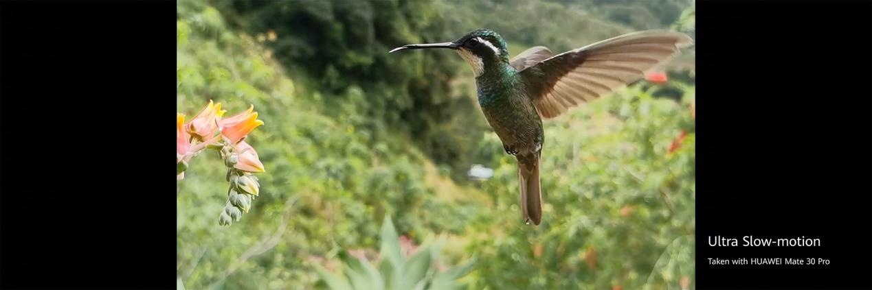 此外,华为Mate30 Pro还支持7680帧超高速摄影,相当于时间被放慢256倍,这样连蜂鸟煽动的翅膀都可以清晰记录下来,拍摄效果可以媲美专业摄像机。