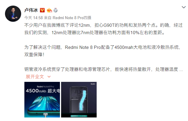 Redmi Note 8 Pro两招搞定功耗 配4500mAh大电池和液冷散热