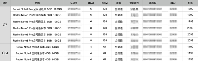 从曝光的价格来看,Redmi Note 8全系采用4GB+64GB的内存组合,售1199元和上代相同。Redmi Note 8 Pro有6GB+128GB和8GB+128GB两个版本,售价为1799元和2099元,也基本上与上代Note 7 Pro持平。当然手机厂商在发布会之前“意外”曝光价格的先例并不少见,所以也不排除Redmi Note 8系列两款手机的价格最终会进一步下调的可能性。