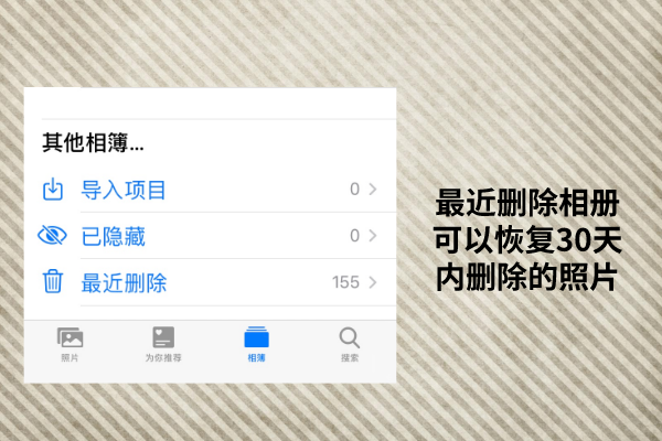 最近删除相册实际上是我们手机的照片删除回收站,只能够保存30天内删除的照片,我们在自己删除了照片后,假如及时发现,很快就可以通过这个途径恢复到相册,假如忘记了,想要恢复就有些难了,但是说难也不难,只要你知道下面的方法,问题也可以迎刃而解。