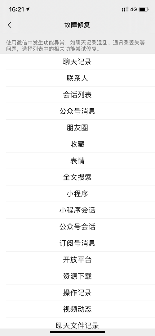 这种情况下就得使用微信的自我恢复数据机制了,我们直接直接打开微信【设置】,选择【帮助与反馈】,选择左上角【小扳手工具】,在故障修复页面选择【聊天记录】选项,即可将聊天记录恢复!