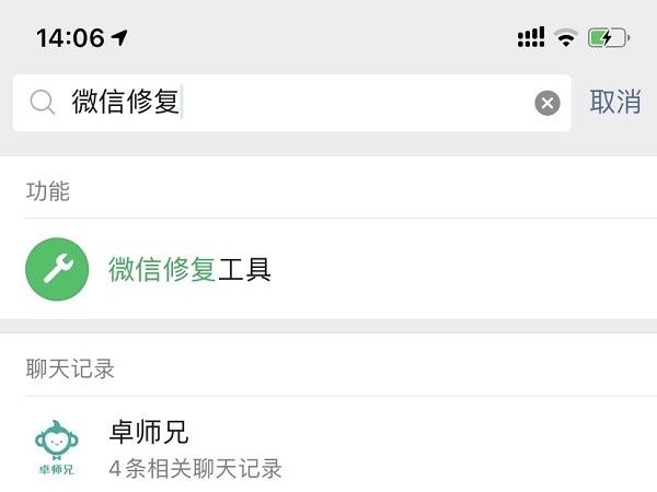 其实很多人都知道了这个方法的,就是在微信里面大家都能找到的,修复聊天记录的方法,我们只需要点击微信的搜索框,输入“微信修复工具”,然后就能轻松地找到里面的修复聊天记录的子页面了,这种方法是最快的进入方法哦!不需要去繁琐的微信设置里面一个个功能区去寻找。