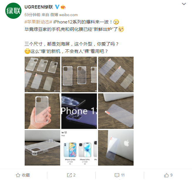 就在今天,知名配件品牌UGREEN绿联在其官方微博上更新了一则消息,称绿联家的iPhone12系列手机壳和钢化膜已经“新鲜出炉”,并配上了相应的产品实拍图。