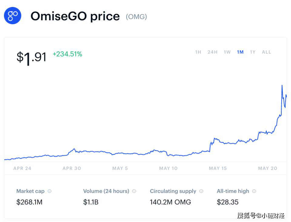 由于投资者对其在Coinbase新上市而感到欣喜,omiseGo的股价在一个月内飙升了234%。