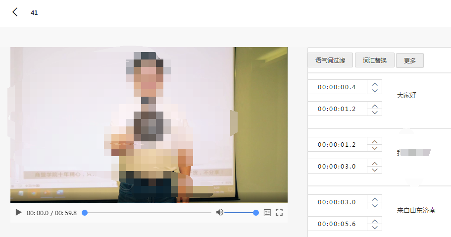 当转化成功之后,我们点击对应的视频,就会看到字幕已经成功的转化到右侧,并且我们可以对它进行编辑修改,因为软件识别多少都是会有一些错别字的,这时候还需要我们人工去校对,校对完成之后点击右上角导出,即可将字幕顺利导出来。