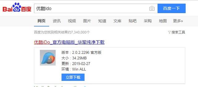 第一步、在百度搜“优酷ido”将此工具进行下载,软件大小只有34MB,很快就可以下载下来。