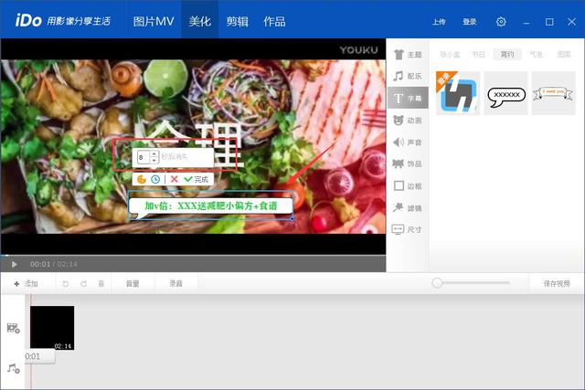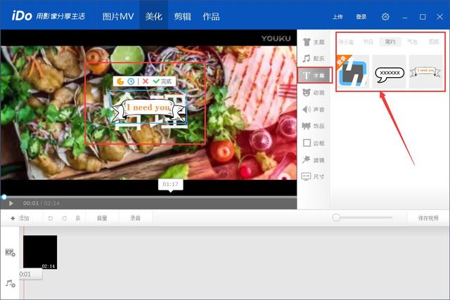 我们点击右侧菜单栏里面的“字幕”,在这里面一些字幕的样式,我们可以选择喜欢的,点击一下之后,字幕就会出现在视频中,然后我们再对字幕进行编辑