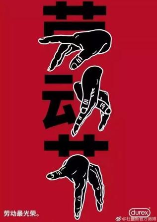 杜蕾斯巧妙地将哲学手势填补在“劳动节”三个字中,用劳动最光荣来解释杜蕾斯品牌的内涵!