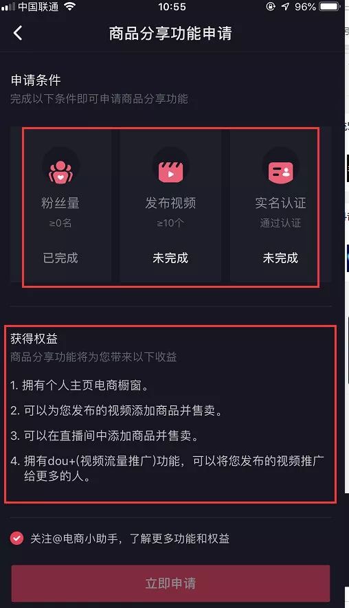 其实是这样的,之前的抖音开通商品分享功能都是有粉丝限制的,记得最早是要达到8000粉,后来改成了1000,再后来就改成了0了,这说明什么?