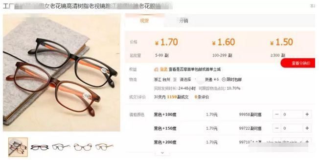 路边摊这种老花镜成本1.5元,卖10块钱一副,妥妥的暴利。