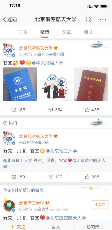 各大高校纷纷刷屏官宣,表白他们心仪的高校。