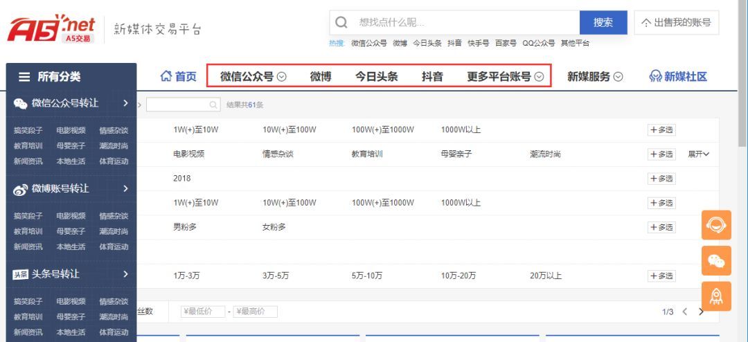 A5交易平台专业提供域名网站、微信公众号、今日头条、微博、链接买卖、程序源码、建站美工任务等交易中介服务,抖音号也可以在上面进行担保交易。