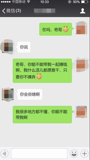 他们永远也不会多想一下,如果这个事来钱这么快,他为什么要告诉你?多一个人加入就多一分竞争,哎,穷屌的思维难以理解。