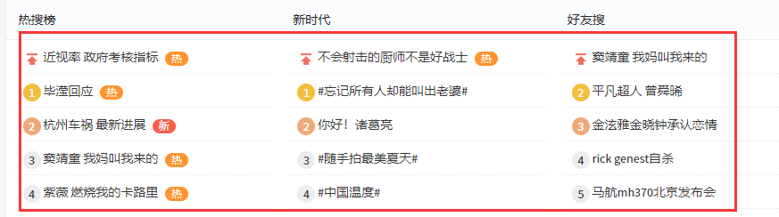 微博热搜榜几乎是一天一个花样,看得人眼花缭乱,我想这也是微博用户粘性很强的原因之一,用户每天都能在微博上发现最新的事物,还能看各路网友的评论,有的网友甚至就是为了看评论而来的!
