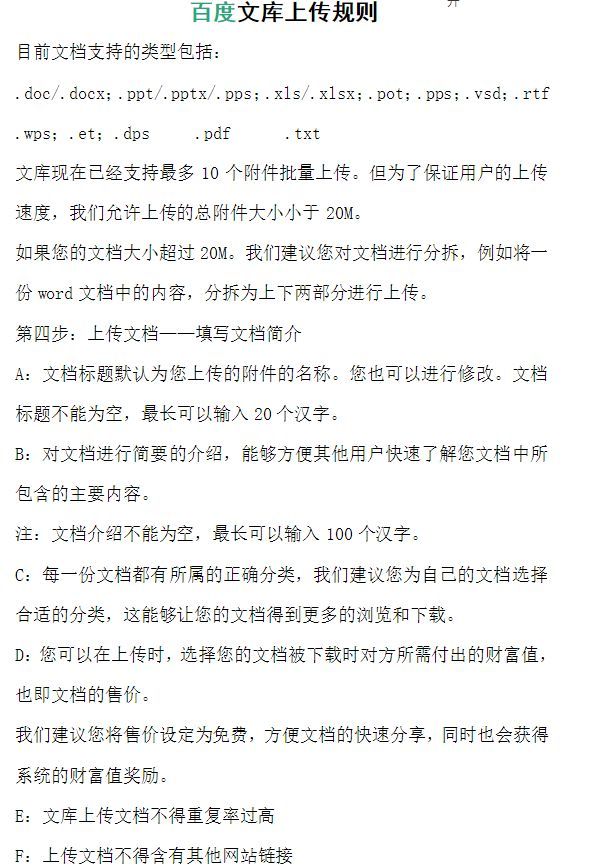 建议伙伴们先了解百度文库上传的规则,否则上传不通过的话,就白做了哦~~~