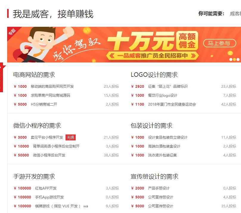 这是一个比较大众的兼职平台了,大伙儿应该都了解,我就上个图给大家看看,有能力的小伙伴快去竞标吧!我再来补充一下玩猪八戒网需要注意的问题。因为猪八戒网是一个需要竞标的兼职网站。