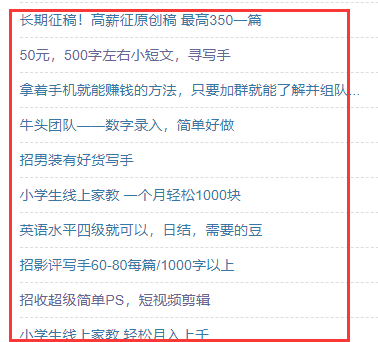 这个网站上的需求是比较靠谱的,里面任务有难有易,除了一般的接文写作,还有外语教师,新媒体编辑实习生,美工设计等,我觉得给的报酬还是相当合理的,大家没事可以翻翻有没有适合自己的。