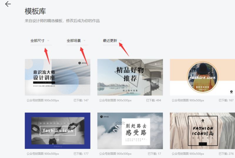 可以根据尺寸以及场景选择模板,并且此网站都会定期更新作品