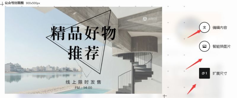 点击一张模板图片,你可以编辑文字内容,智能换图片,以作出你需要的图片。