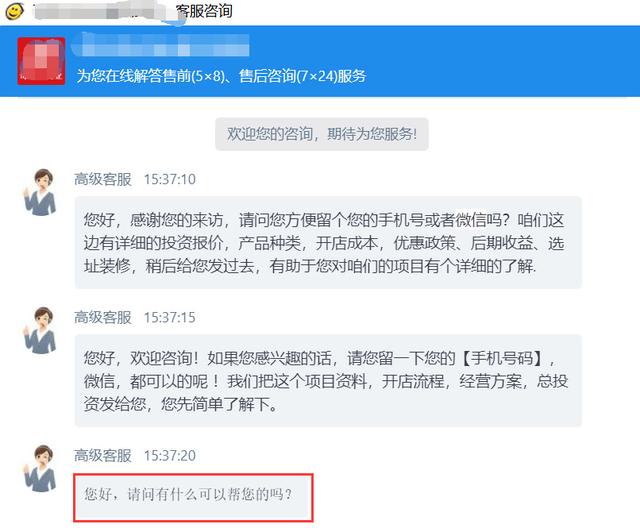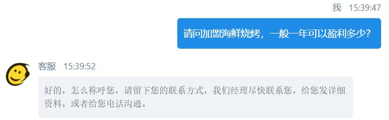 我搜索“2019年现在做什么赚钱”证明我对加盟毫无想法,唯一可以确定的是:我想赚钱。很显然,图中客服的开场白完全没有戳中我的需求点。
