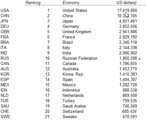 看看下面这些国家里排名倒数第三的国家GDP是多少?