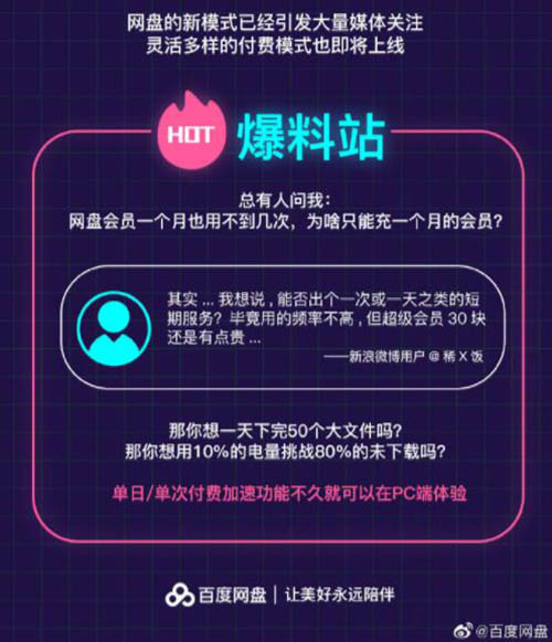 百度网盘即将上线单日/单次付费加速功能
