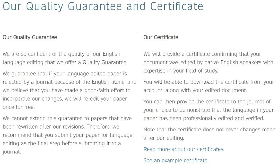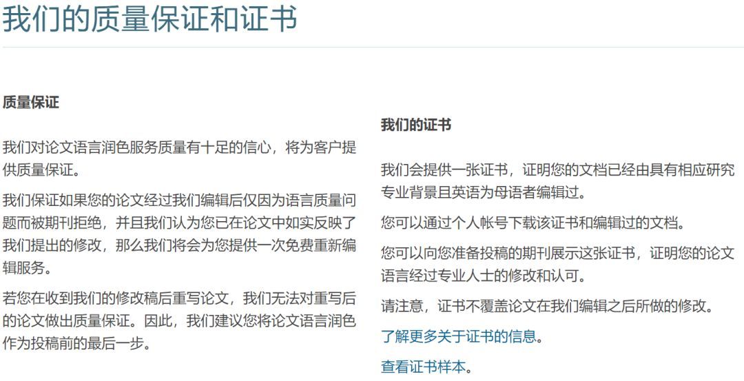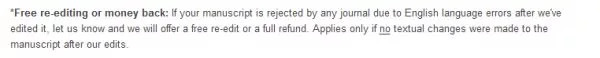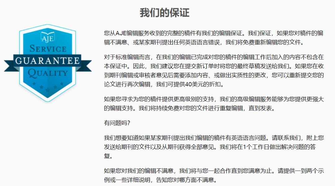 AJE这个Guarantee相对更给力一些:如果杂志提出语言错误,那么就可以重新润色。这里应该就是说,只要杂志提出语言仍有问题,那么就重新润色。