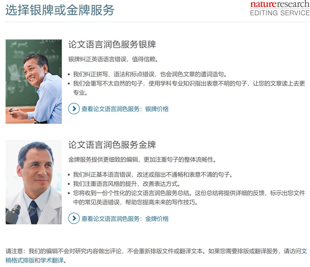 SpringerNature论文润色分为银牌服务和金牌服务两类。银牌服务类似于基本服务,金牌服务加入了其他一些更多的服务,比如文章评论还有文风的建议。有点类似于Wiley的高级润色,也并 不是“无限次免费润色直到发表”。