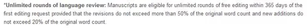另外,Webshop给免费润色设置一个期限:一年,一般一轮的审稿意见会是2-3个月出来,再加上根据审稿意见修改2-3个月,也就是说Webshop的高级服务大概可以免费润色2-3次,应该就是怕一些被拒10次8次的选手吧。这些问题应该在润色之前先咨询好。