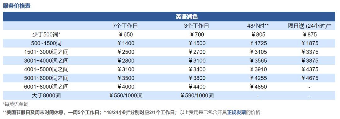 国外润色机构基本都可以银联卡付款,甚至可以微信或者支付宝付款,也基本提供了中国特色的发票。唯一不足的也许就是在交流上,不过可以通过邮件用中文交流。所以我有些不明白为什么国内机构还能把价格定得那么高?