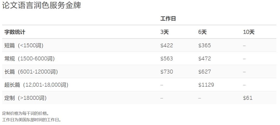 金牌服务的价格如下,不过这不是“无限次免费润色直到发表”的服务。