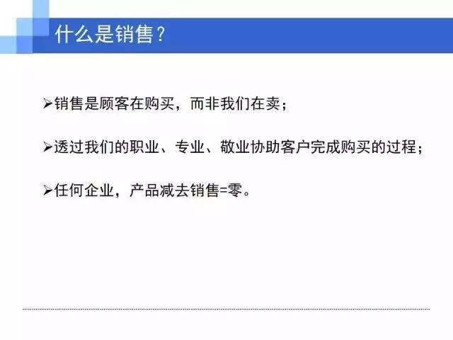几大永恒不变的问句:当顾客要购买产品的时候,他一定会不自觉的问以下几个问题,如果能有效解答这几个问题,就能达成销售。