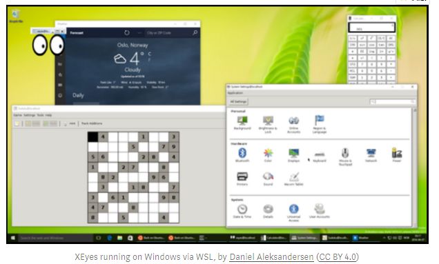 在WSL进入Windows的初期,一位积极的WSL用户设法让XEyes作为GUI应用程序运行在WSL和X11上。XEyes所做的就是在屏幕上画一对卡通眼睛,跟着鼠标指针转。在成功演示时,所有的社交媒体都沸腾了!
