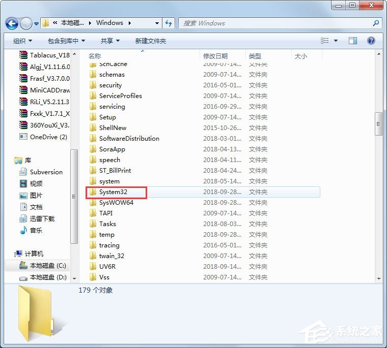 3、在Windows文件夹里面找到“System32”这个文件夹再点击打开;