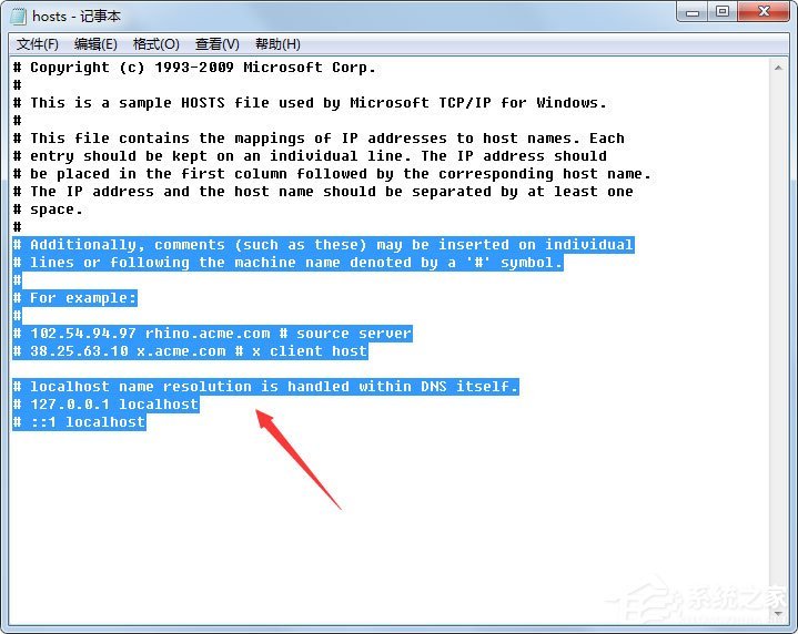 3、以上的步骤尝试了,如果还是总是出现“错误3194” 的话,那就只能把hosts文件里面的内容给替换了,按照小编下图这样的文本,然后把host里面的文本全部替换为小编下图的文本,然后点击保存,再重启即可生效。