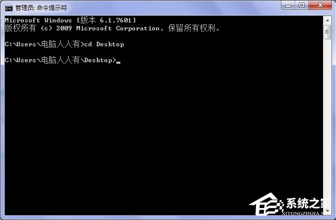 5、然后再使用CD命令进入Desktop(桌面),注意两者之间有空格(按回车执行);