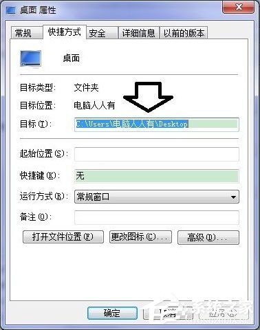 2、然后,记录一下桌面文件夹的位置(不同的账户,路径各异),通常桌面文件夹的路径是C:\Users\用户名\Desktop;
