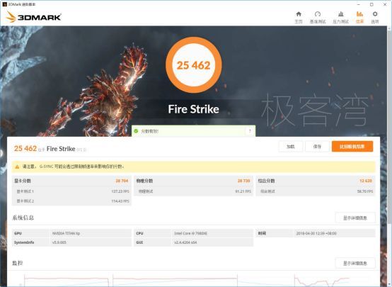 总分达到了25462分,通杀各种大作都不在话下,不愧是卡皇(喂~你让TTV怎么办...)