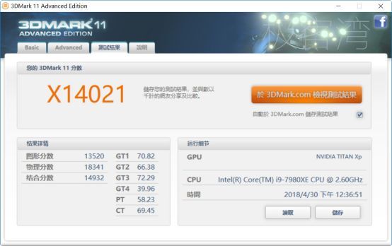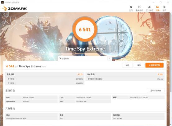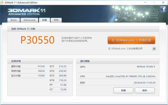 相比TTXP的分数几乎没有差别啊...这其实已经到了P分的瓶颈,因为P分和CPU关系比较大,也就是说这里7980XE已经是瓶颈了……