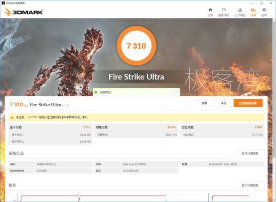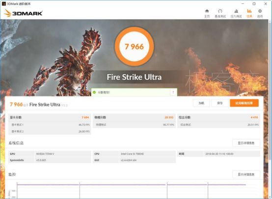 Fire Strike Ultra中也差不多,7966分相比TTXP升幅约10%的样子了: