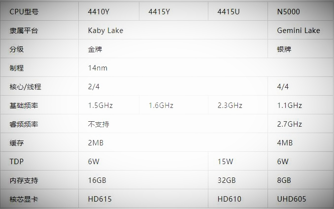 在一些专业的测试平台显示:N5000单核性能持平i3 6006U,多核性能则达到了i3 7100U的水平。当然,核心显卡集成的是Intel GMA UHD 605,这方面跟酷睿系列还是差距比较大的,所以在视频渲染及游戏体验中,远远达不到上述两款CPU的标准。不过在日常使用中,性能还算是相当强悍的,毕竟价格比i3系列低了将近50%呢。