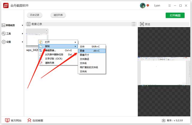 第二步、截图成功后,选中图片单击鼠标右键,选择“复制”-“图像”。