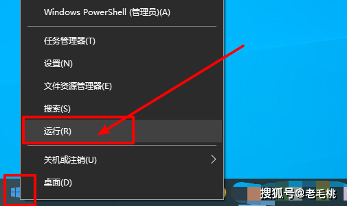 1、右键开始菜单,点击【运行】