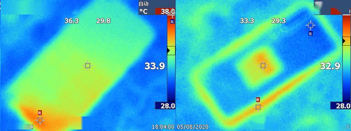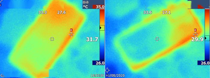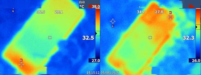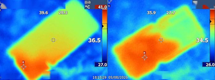 在进行网速测试后,荣耀30 Pro机身最高温度为36.3℃,骁龙865机型机身最高温度为39.6℃,均为正面。对于体感温度足有39℃的广州来说,这已经是“烫不烫手”的区别了。