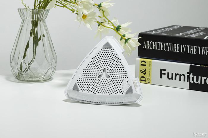 Lyra Trio套装由三个相同的白色金字塔形状路由节点组成,整体洁白淡蓝相间,似“熨斗”似“UFO飞行器”又似“金字塔”。产品上华硕ASUS的LOGO采用磨砂丝印,在不同的光线下能折射出不同的色彩。底面布满了蜂窝孔,对应的上面还有条状孔,上下通透的设计很好地解决了产品的散热问题。在极端42℃环境温度下,也能24小时常开不死机。