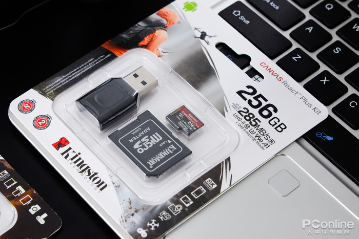 这次我们拿到的两张存储卡都是带USH-Ⅱ读卡器的256G版本,包装上跟金士顿自家其他系列产品并没有太大的差异,保持了金士顿一贯的低调风格,外包装只有最高读取速度的标识能充分体现出它的王者实力。