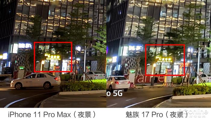 而事实上,最终的效果也的确如此。在同样的场景下,右手边的魅族 17 Pro能够展现出亮度更高的,细节也更丰富的夜景照片,iPhone 11 Pro Max由于已经加入了夜景模式,实际的效果已经比以往的iPhone要更好了,可惜在魅族的面前还是有改进的空间。